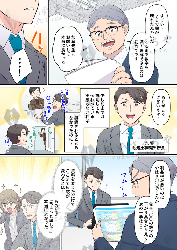 というお言葉をいただき、漫画を使った訴求力を高く評価していただいています。